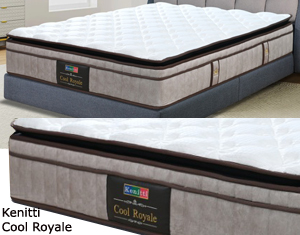 Kenitti Cool Royale - 13" * Pocket Spring System * Cool Silk Fabric * High Density PU Foam * Non Flip with Luxurious Quilted Euro Top & Pillow Top * High Density Foam Encasement * Polyester Needle Punched Felt Pad * Top to Bottom 13" * Firmness - Firm * 12 Years Warranty Single RM 3,550 Super Single RM 4,150 Queen RM 4,950 King RM 5,950 |