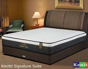 Kenitti Villa Suite * Kenitti High Tensile Bonnel Spring * Luxury imported knitted ticking with soft touch treatment * Premium Quality 100% Natural Latex * Non Flip Single Sided * Edge Stabilizer * Coconut fiber * 12" Top to bottom * 12 years warranty Single - RM 1,099 Super Single - RM 1,299 Queen - RM 1,669 King - RM 1,989 |