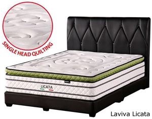 Laviva Licata * Pocketed Coil * Natural Latex * Foam Box * Logo Knitting * Turn Free * Anti- Dust Mite * Firmer Support * Minimum Disturbance * Proper Back Support * S Zone Support * 12 Years Warranty * Quality Assurance * Thickness 13" Queen Mattress : RM 3,329 King Mattress : RM 4,159 LI20 Queen Divan : RM 2,009 LI20 King Divan : RM 2,509 |
