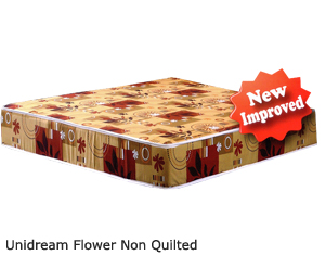 Unidream Flower Non Quilted * Compressed PU Foam Core * 100% Soft Polyester Fabric * Anti Fungal * Turn Free * Anti-Dust Mite * Firm Support * Minimum Disturb * Proper Support * Water Penetration (Coconut Fibre) * Air Ventilation (Coconut Fibre) * Warranty 6 Years * Single, Super Single, Queen, King |