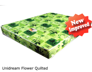 Unidream Flower Quilted * Compressed PU Foam Core * 100% Soft Polyester Fabric * Anti Fungal * Turn Free * Anti-Dust Mite * Firm Support * Minimum Disturb * Proper Support * Water Penetration (Coconut Fibre) * Air Ventilation (Coconut Fibre) * Warranty 6 Years * Single, Super Single, Queen, King |