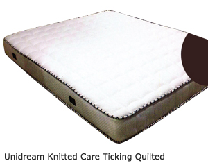 Unidream Knitted Care Ticking Quilted * Quality Rebond Knitted Quilted (New & Improved Sleep Technologies) * Rebond Knitted Quilted Fabric * Anti Fungal * Turn Free * Anti-Dust Mite * Firm Support * Minimum Disturb * Proper Support * Water Penetration (Coconut Fibre) * Air Ventilation (Coconut Fibre) * Warranty 6 Years * Single, Super Single, Queen, King |