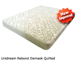 Unidream Rebond Damask Quilted * Damask Quilted Fabric * Shredded & Compressed Prime PU Foam * Anti Fungal * Turn Free * Anti-Dust Mite * Firm Support * Minimum Disturb * Proper Support * Water Penetration (Coconut Fibre) * Air Ventilation (Coconut Fibre) * Warranty 6 Years * Single, Super Single, Queen, King |