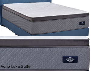 ![]() Vono Elegance Suite * i-Back Pocketed Springing System - isolate movement areas & conform perfectly to your body's contours for optimal support. * Prevent allergies and skin irritation. * The most comfortable breathable material that prevents the occurence of bad odours. * Edge Stabilizer prevents the sagging of the bed for longer lifespan. * Non Flip * Thickness 14" * 15 Years Warranty Single - Super Single - Queen - King - |